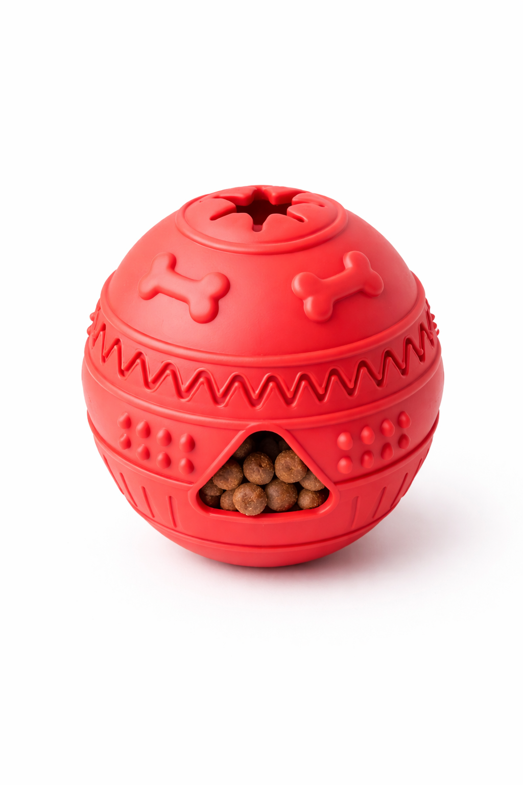 Insert small treats or dry food into the toy and allow your dog to interact with it. Designed to encourage active play and gradual feeding.